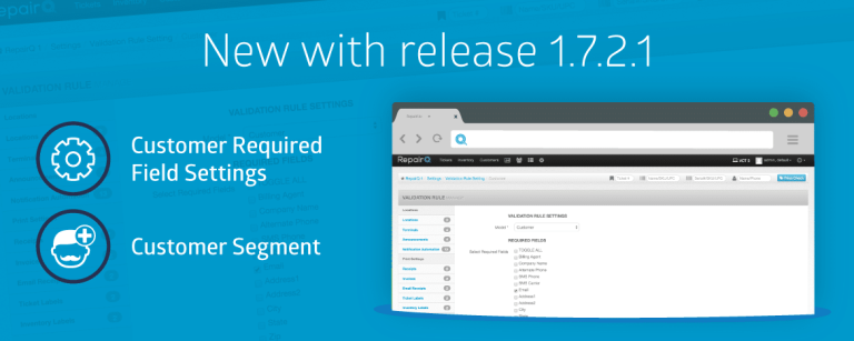 Release 1.7.2.1 Highlights Customer Required Field Settings Customer Segment Welcome to RepairQ Version 1.7.2.1! Version 1.7.2.1 is a...